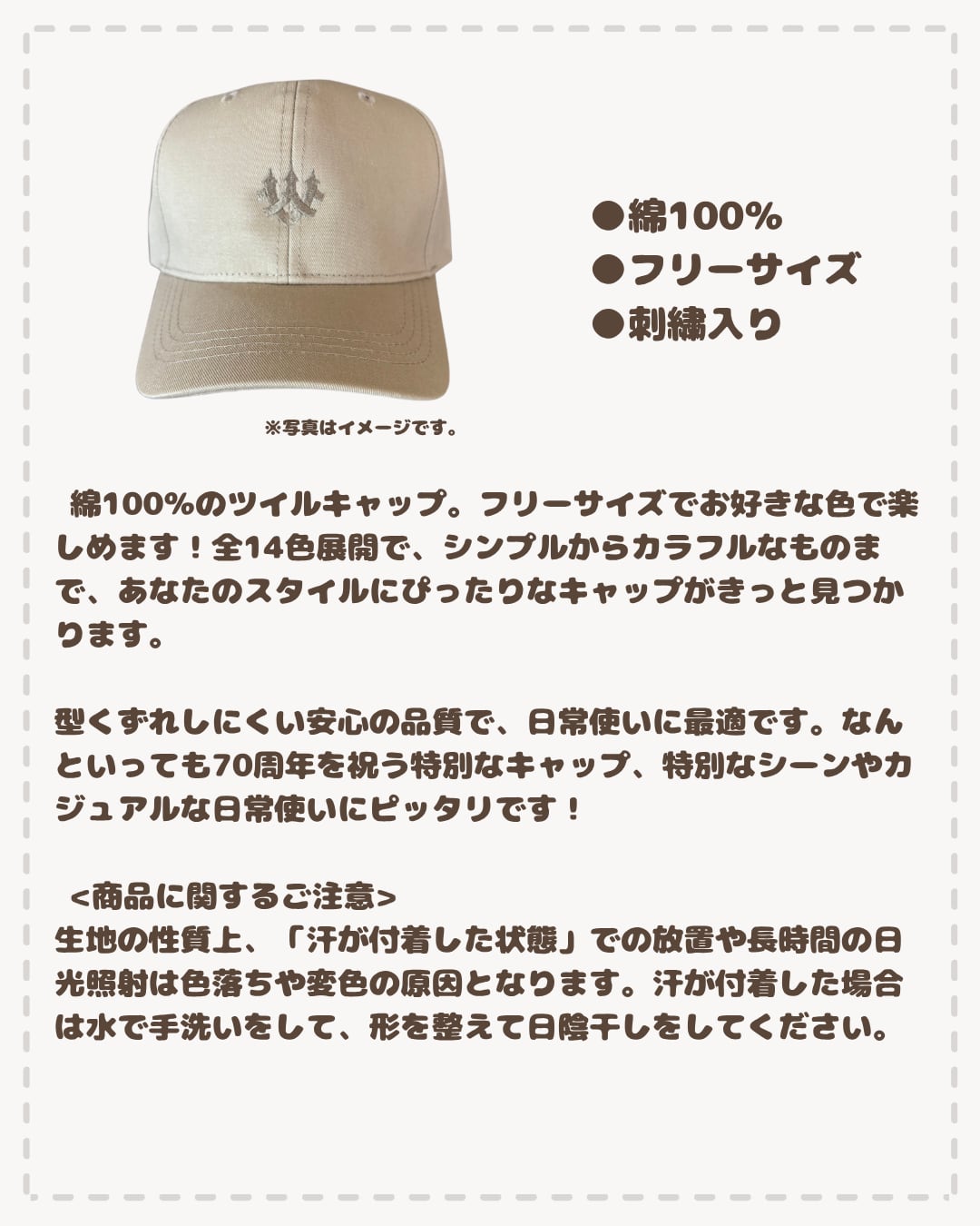 全14色展開で、シンプルからカラフルなものまで、あなたのスタイルにぴったりなキャップがきっと見つかります。型くずれしにくい安心の品質で、日常使いに最適です。前面の刺繍は「御影の紋章」。さりげないデザインなのでカジュアルなスタイルにもピッタリです!