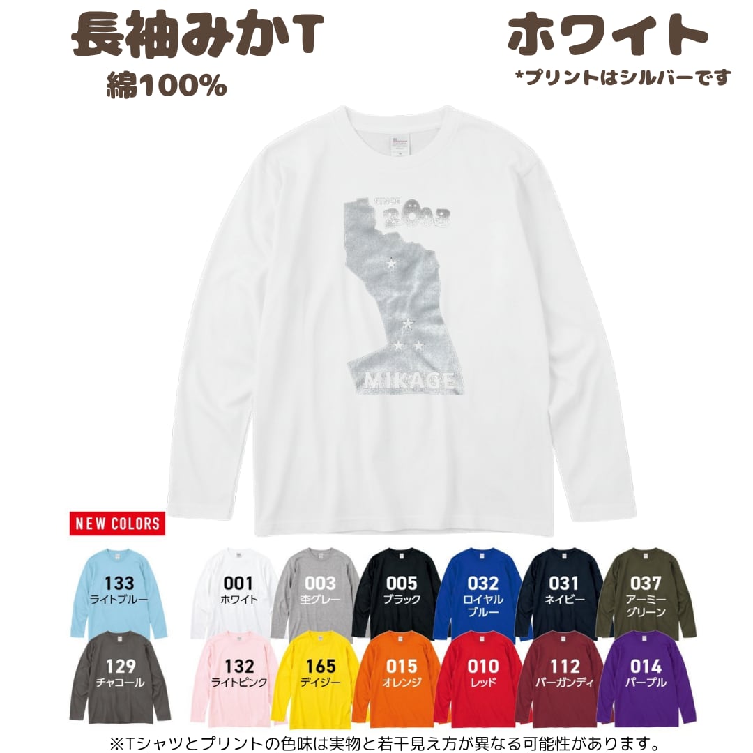 ≪みかロンT≫綿長袖Tシャツ(ホワイト×シルバー)サイズ:130,150,XS,S,M