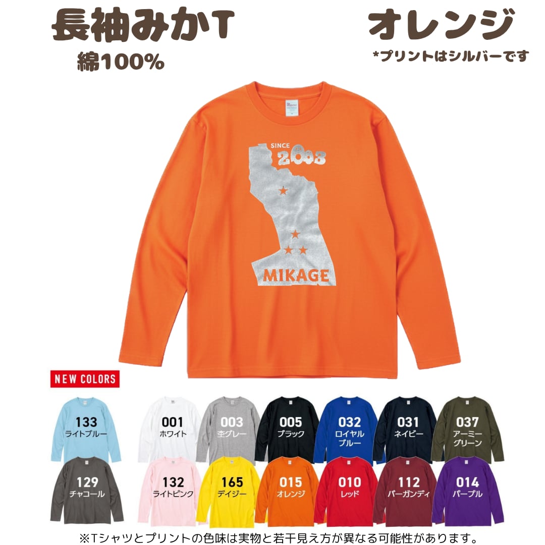≪みかロンT≫綿長袖Tシャツ(オレンジ×シルバー)サイズ:130,150,XS,S,M