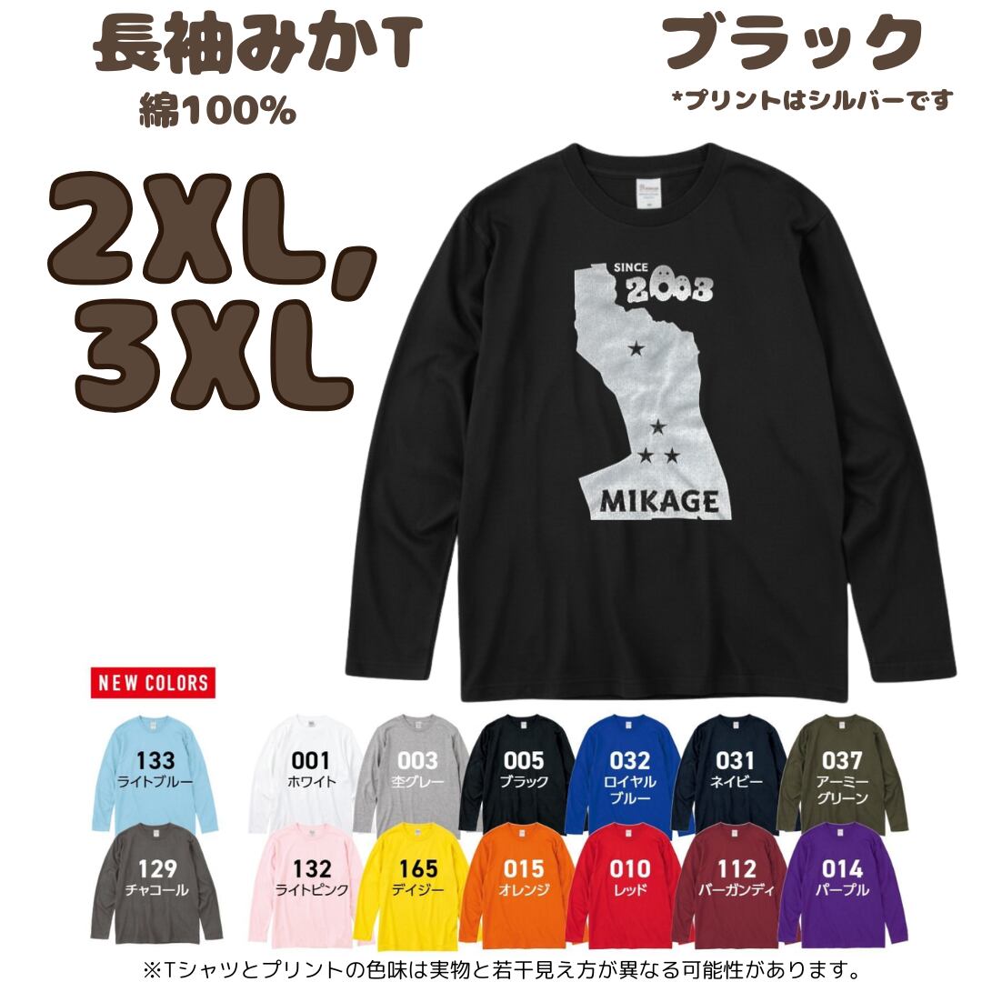 ≪大人のみかロンT≫綿長袖Tシャツ(ブラック×シルバー)サイズ:2XL ,3XL