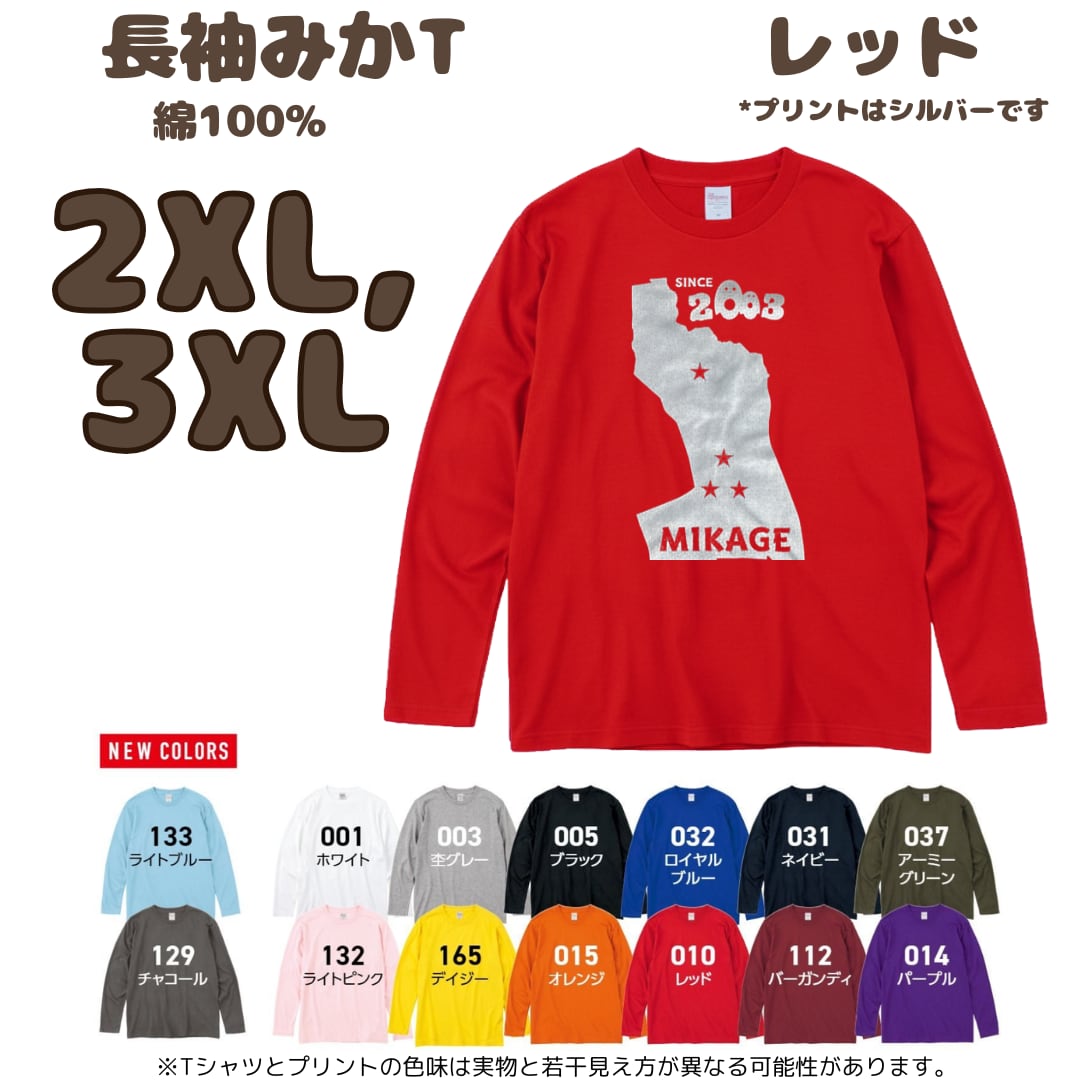 ≪大人のみかロンT≫綿長袖Tシャツ(レッド×シルバー)サイズ:2XL ,3XL
