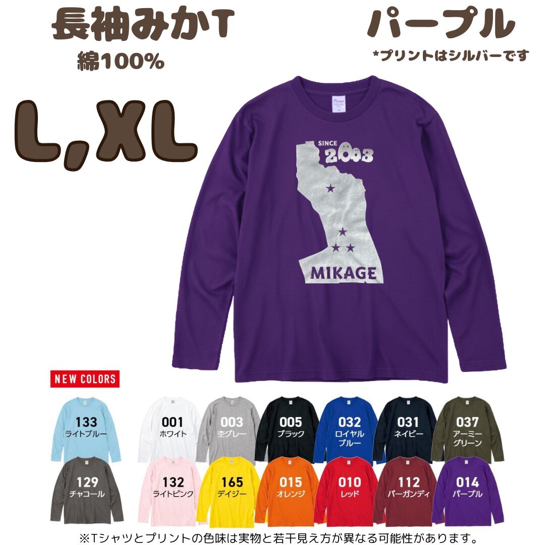 ≪大人のみかロンT≫綿長袖Tシャツ(パープル×シルバー)サイズ:L,XL